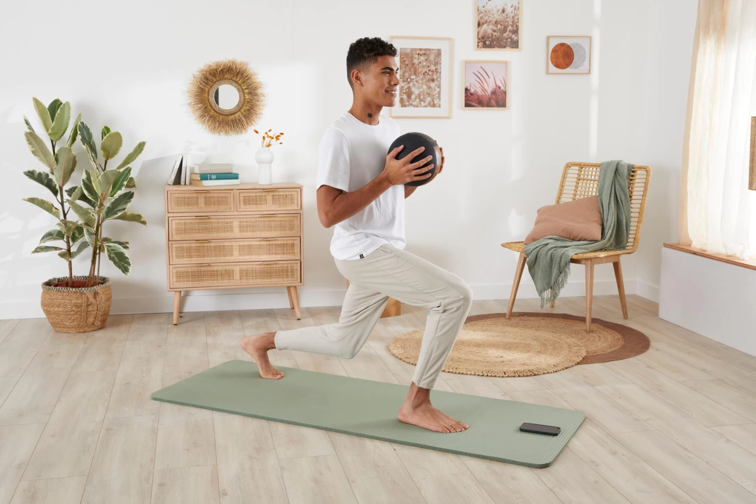 We advise adapting the weight of your medicine ball to the muscle group you are working on. The lower-body muscles are more powerful than the upper-body muscles. You can therefore use heavier weights for your squats and lunges.