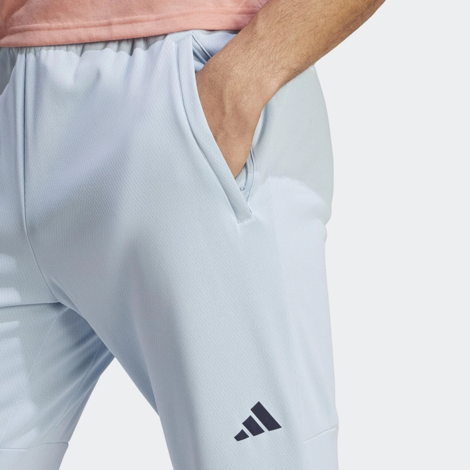 Push through to the last rep in these adidas training pants. Breathable fabric and moisture-absorbing AEROREADY keep you dry and comfortable during every set. Zip pockets keep your essentials stashed within reach. A minimum of 70% of this product is a blend of recycled and renewable materials.