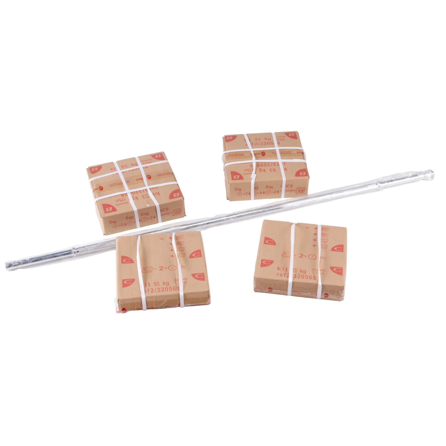 It comes in the form of 5 packages (2 B boxes, 2 C boxes) + the 1.75 m bar.