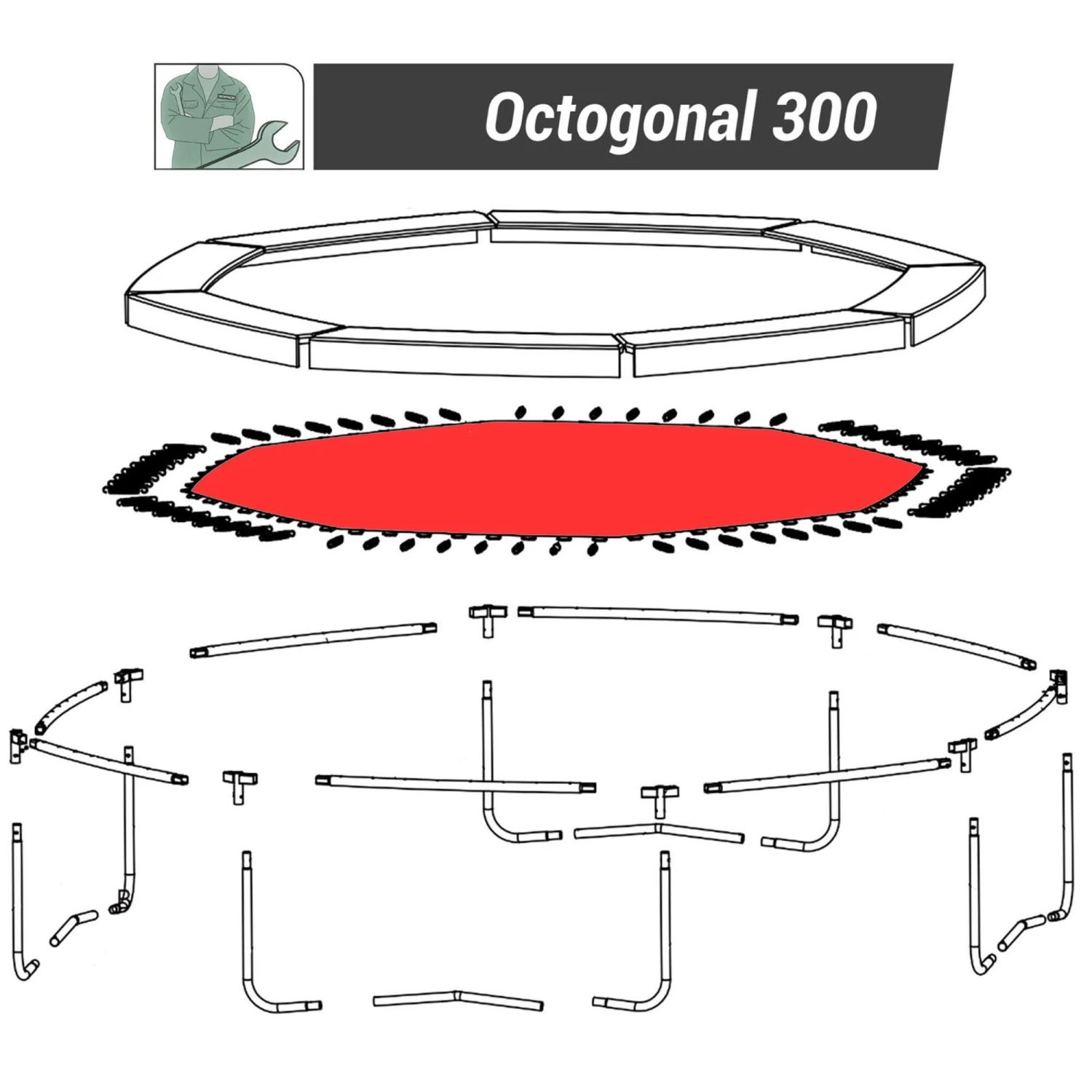 Compatible with the Octagonal 300 trampoline (ref: 8527376).